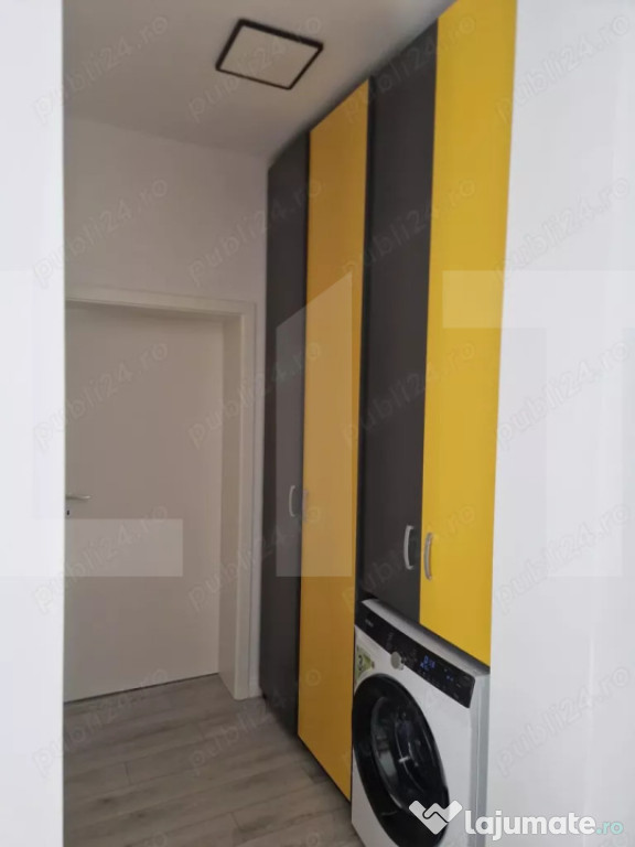 La intrare vă întâmpină livingul spațios, luminos, cu acces direct către bucătăria open space, complet utilata si mobilata.