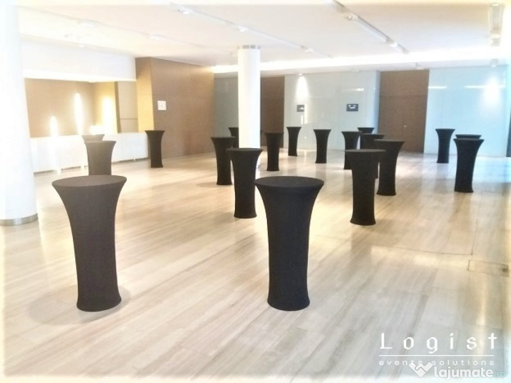 Oferim pentru inchiriere mese cocktail cu huse mulate. Asiguram transport și montaj oriunde in Romani ...