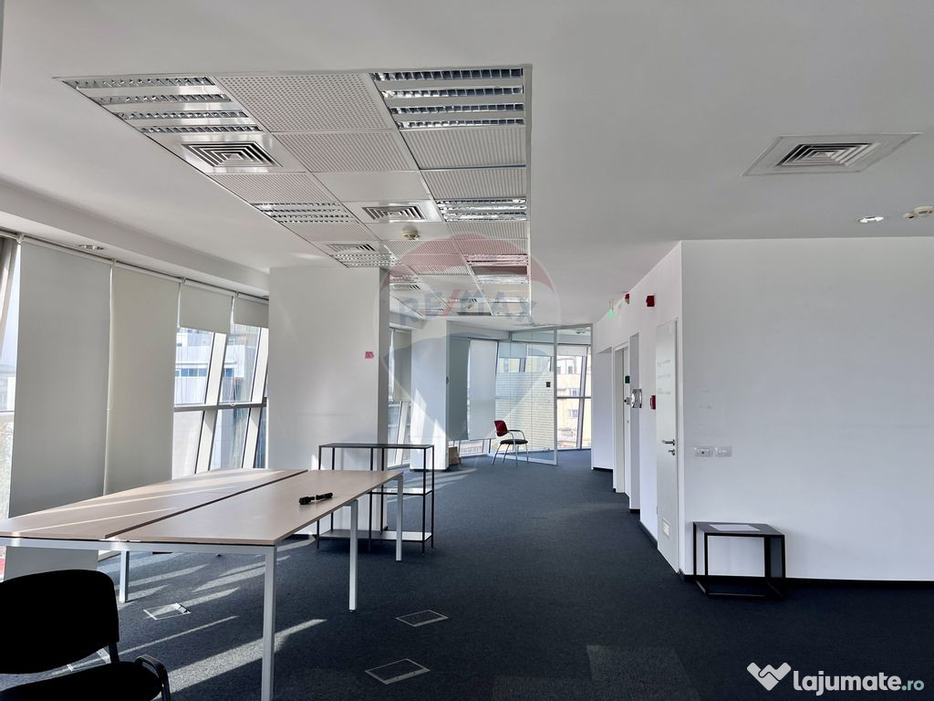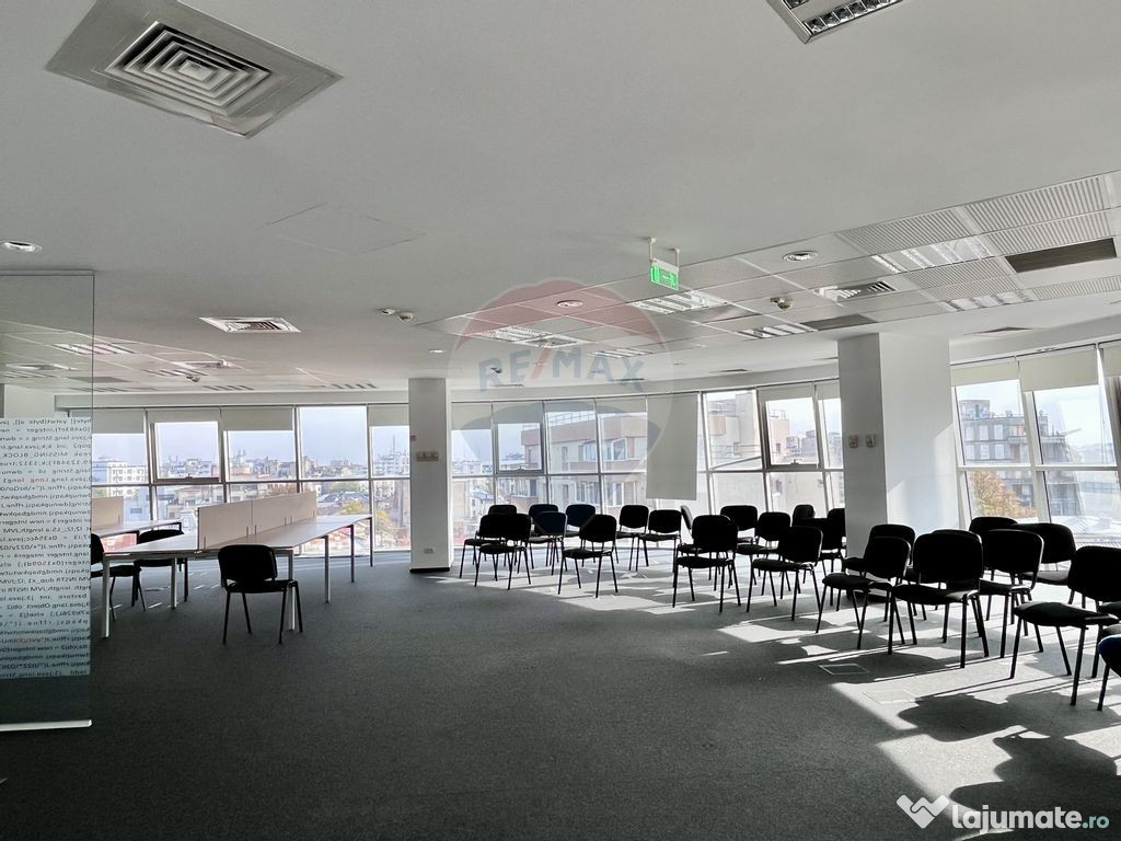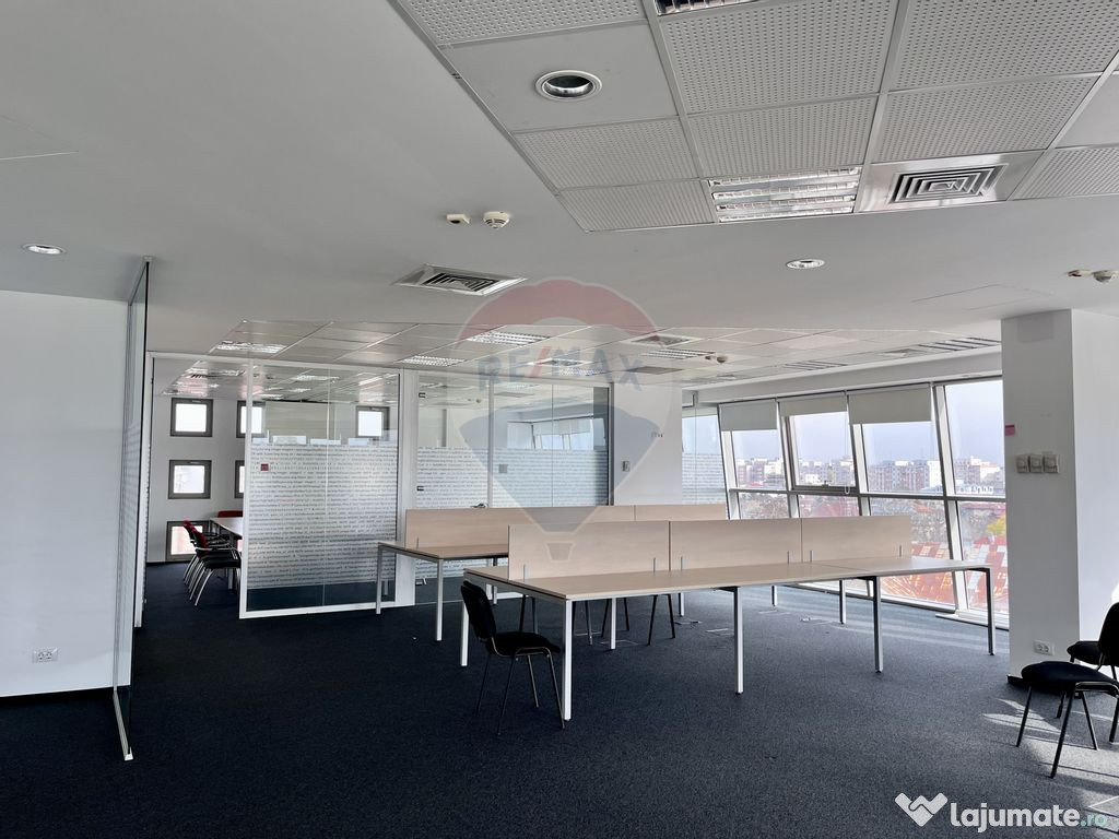 Oferim spre inchiriere un spatiu modern de birouri situat la etajul 4 al unei cladiri de birouri reprezentative, cu vedere panoramica 360 si o suprafata totala de 595,5 mp utili iar mochetabil 517 mp. Spatiul este ideal pentru companii in crestere, echipe numeroase sau activitati corporate.Avantaje principale: