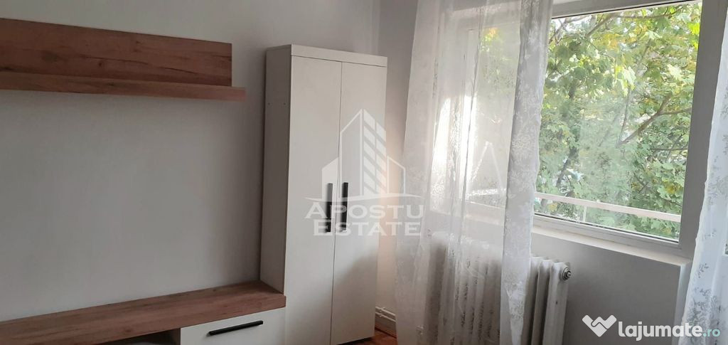 APOSTU ESTATE vă propune spre închiriere un apartament spațios și elegant, cu 2 camere, situat într-o zonă liniștită și bine conectată din Timisoara, ideal pentru familii sau persoane care doresc un spațiu generos și confortabil.Suprafață utilă: 50 mp