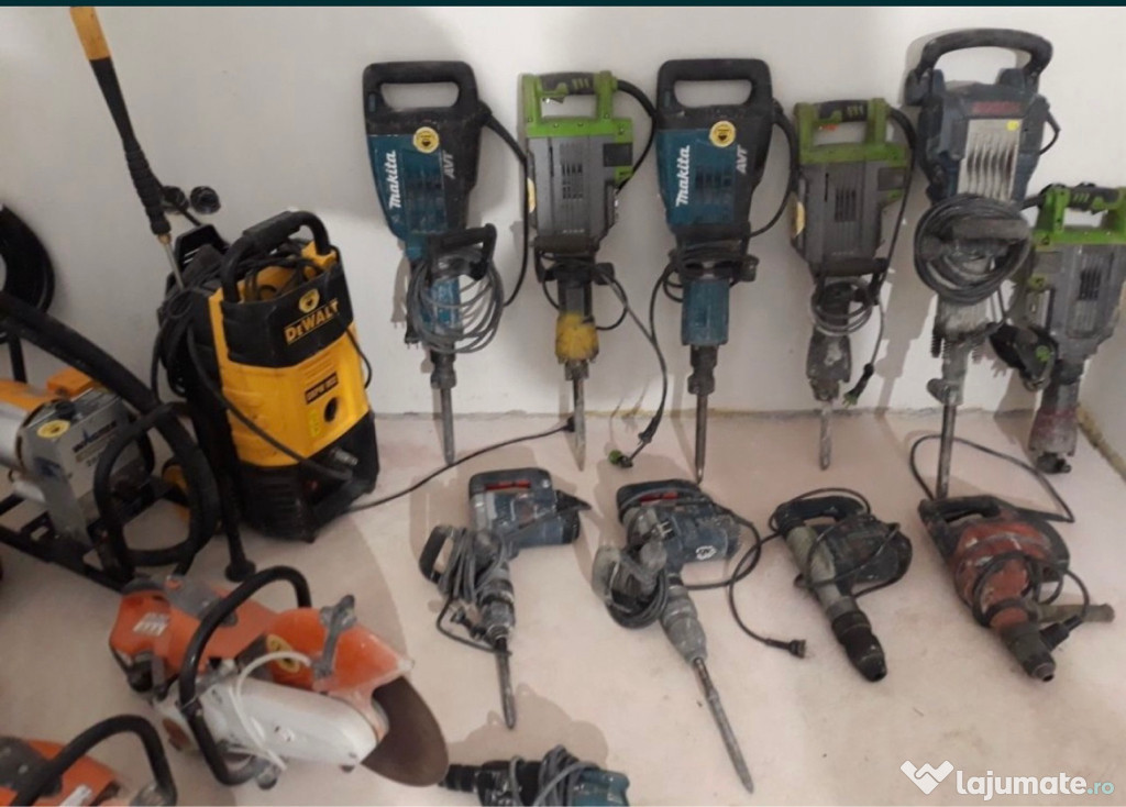 Inchiriez scule: Picamer, Placa, Drujba beton, Motoburghiu