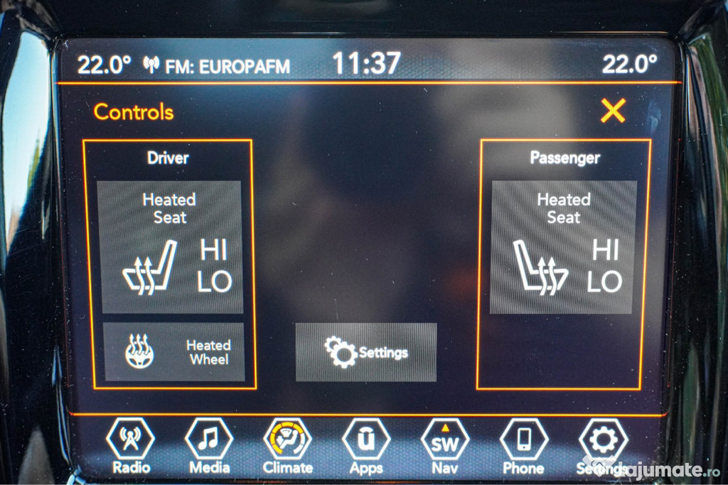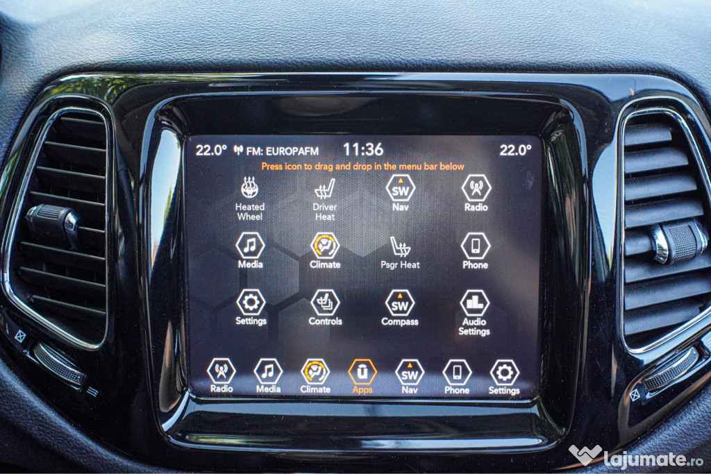 • Sistem multimedia Uconnect cu ecran tactil de 8.4”, Apple CarPlay, Android Auto, Bluetooth, USB, AUX-IN, cititor SD, comenzi vocale