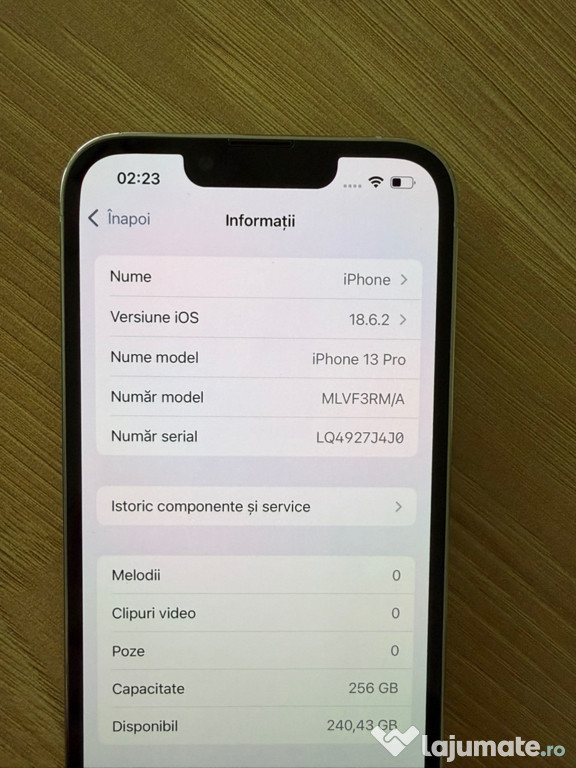 Vând iPhone 13 Pro, variantă cu 256 GB, culoare Silver. Telefonul este în stare foarte bună, funcționează impecabil și a fost folosit cu grijă.Anuntul IPhone 13 Pro 256 GB Silver – stare foarte bună, baterie 86% este adaugat de pe LaJumate.ro.