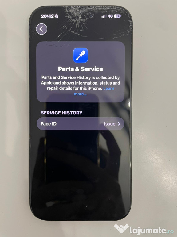 Vând iPhone 15 Pro utilizat. Telefonul se vinde pentru piese sau utilizare uzuală (despinde cum il folositi). Singura chestie afectata la el este modulul de Faceid in rest merge totul impecabil. Este liber la retea si fara icloud si vine cu tot cu cutie.Pentru mai multe detalii, in privat