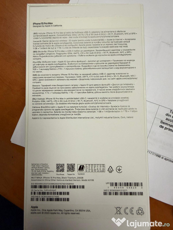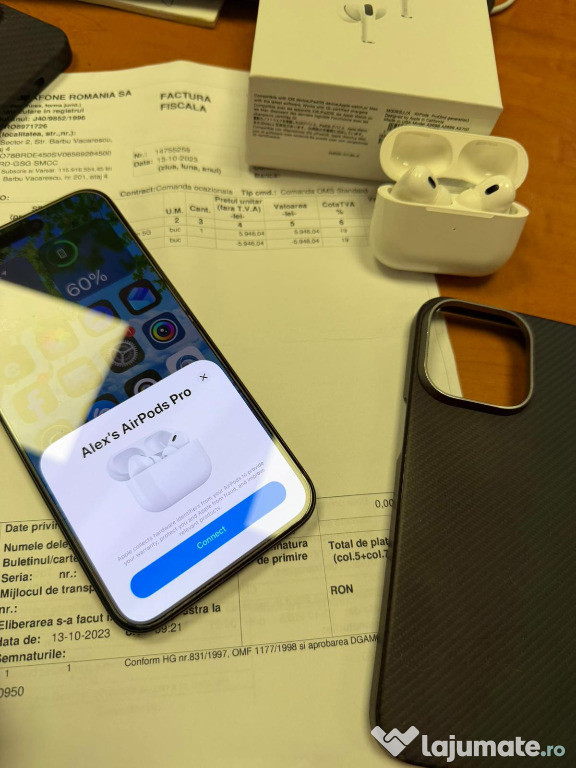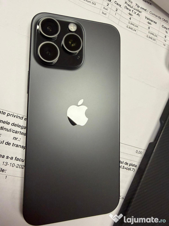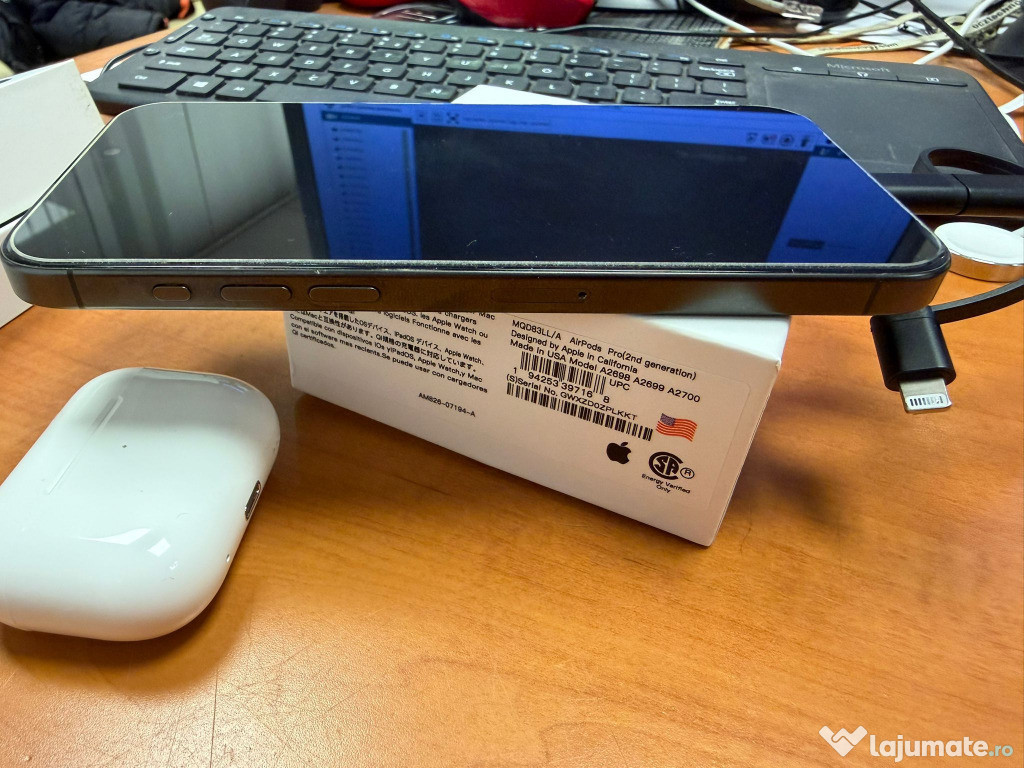 Vând iPhone 15 PRO MAX Black Titanium și Air Pods Pro 2, împreună cu 2 huse din Kevlar, cu factura de ...