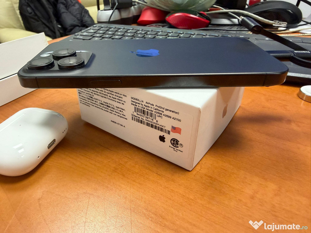 IPhone 15 PRO MAX Black Titanium Ca NOU + Air Pods Pro2 + 2 HuseKevlar