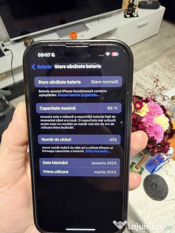 Este impecabil ca si aspect fara zgarieturi, ciobituri si are o stare sanatate a bateriei de 88%.