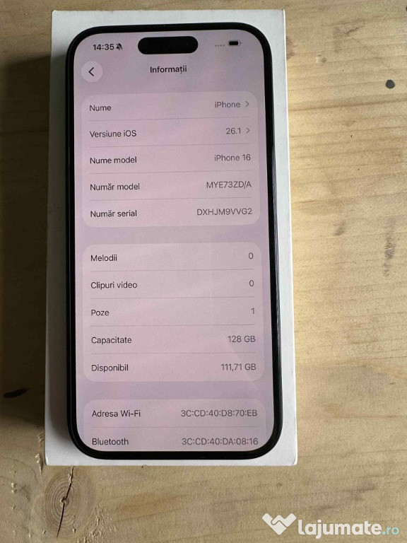 telefon nou cumparat in 21.11.2025, 12 Ram, 256 ROM, black, cutia se poate desigila la cumparare pent ...