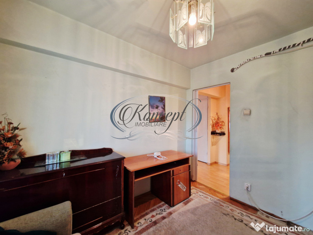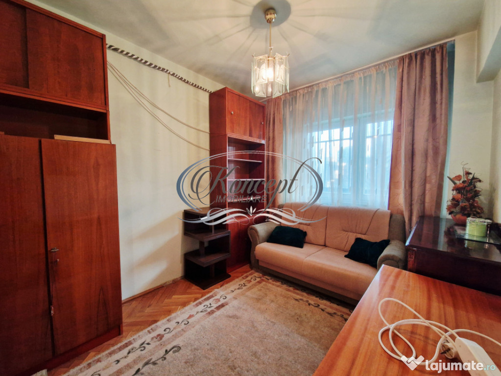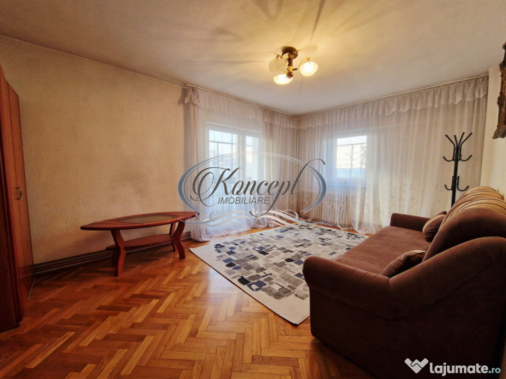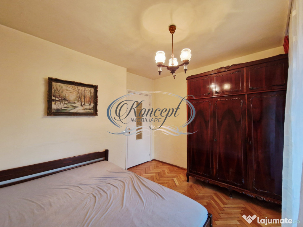 Koncept Imobiliare va ofera spre inchiriere un apartament cu 3 camere situat in cartierul Manastur, in imediata apropiere a Magazinului Big si a pietei agroalimentare Ion Mester, la etaj intermediar al unui bloc rezidential cu regim de inaltime D+P+10E. Proprietatea beneficiaza de orientare sud-vestica, ceea ce asigura luminozitate constanta pe tot parcursul zilei si o atmosfera placuta, ideala pentru locuire confortabila. Apartamentul dispune de o suprafata utila de 64 mp, la care se adauga doua balcoane inchise cu o suprafata totala de 18 mp, transformate in spatii functionale ce pot fi utilizate pentru relaxare sau depozitare suplimentara. Compartimentarea este complet decomandata si cuprinde holuri generoase, bucatarie deschisa cu loc de servit masa, living primitor, doua dormitoare bine proportionate, o debara si o camara destinata organizarii eficiente a obiectelor personale. Finisajele sunt clasice, bine intretinute, iar mobilierul si electrocasnicele sunt de calitate, intre care se remarca doua aparate de aer conditionat ce contribuie la confortul termic in sezonul cald. Incalzirea este asigurata de centrala termica proprie cu calorifere, iar geamurile termopan si usa metalica de la intrare optimizeaza izolatia fonica si termica. Locuinta se remarca prin spatiile versatile, luminozitatea excelenta datorita orientarii sud-vestice, linistea zonei si vederea deschisa care creeaza un sentiment real de confort urban. Pozitionarea este unul dintre atuurile principale, avand acces facil la parcuri, locuri de joaca, scoli, statii pentru transport in comun, magazine, banci si diverse spatii comerciale, elemente ce transforma zona intr-una dintre cele mai functionale ale cartierului. Exista posibilitatea de parcare in zona, aspect foarte util pentru rezidenti. Acest apartament reprezinta o alegere potrivita pentru familii, cupluri, studenti sau persoane din mediul corporate care isi doresc o locuinta luminoasa, bine organizata si amplasata intr-un punct cu accesibilitate ridicata, fiind ideal pentru inchiriere pe termen lung.Pentru informatii suplimentare, programarea unei vizionari sau pentru a afla oferta noastra completa va stam la dispozitie telefonic, prin e-mail sau la sediul agentiei noastre, pe str. Aviator Badescu, nr. 19, Cluj-Napoca.
