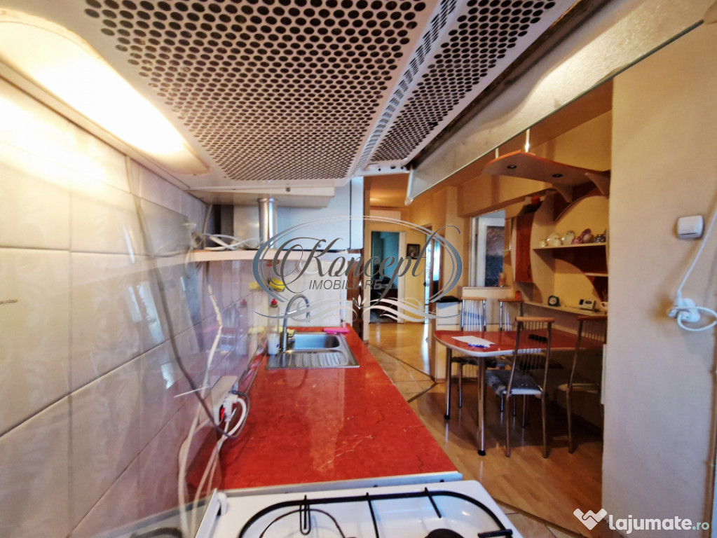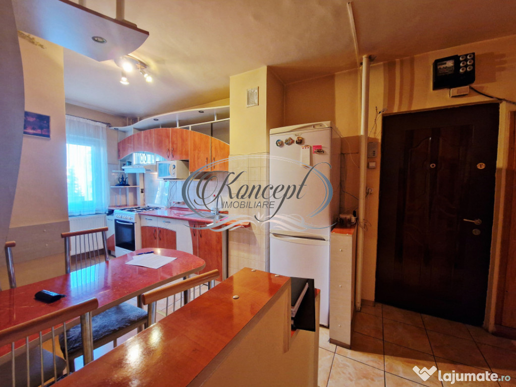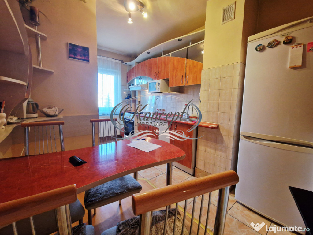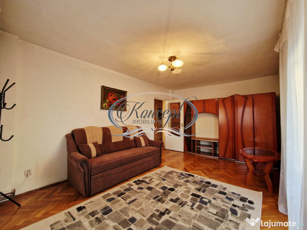 Koncept Imobiliare va ofera spre inchiriere un apartament cu 3 camere situat in cartierul Manastur, in imediata apropiere a Magazinului Big si a pietei agroalimentare Ion Mester, la etaj intermediar al unui bloc rezidential cu regim de inaltime D+P+10E. Proprietatea beneficiaza de orientare sud-vestica, ceea ce asigura luminozitate constanta pe tot parcursul zilei si o atmosfera placuta, ideala pentru locuire confortabila. Apartamentul dispune de o suprafata utila de 64 mp, la care se adauga doua balcoane inchise cu o suprafata totala de 18 mp, transformate in spatii functionale ce pot fi utilizate pentru relaxare sau depozitare suplimentara. Compartimentarea este complet decomandata si cuprinde holuri generoase, bucatarie deschisa cu loc de servit masa, living primitor, doua dormitoare bine proportionate, o debara si o camara destinata organizarii eficiente a obiectelor personale. Finisajele sunt clasice, bine intretinute, iar mobilierul si electrocasnicele sunt de calitate, intre care se remarca doua aparate de aer conditionat ce contribuie la confortul termic in sezonul cald. Incalzirea este asigurata de centrala termica proprie cu calorifere, iar geamurile termopan si usa metalica de la intrare optimizeaza izolatia fonica si termica. Locuinta se remarca prin spatiile versatile, luminozitatea excelenta datorita orientarii sud-vestice, linistea zonei si vederea deschisa care creeaza un sentiment real de confort urban. Pozitionarea este unul dintre atuurile principale, avand acces facil la parcuri, locuri de joaca, scoli, statii pentru transport in comun, magazine, banci si diverse spatii comerciale, elemente ce transforma zona intr-una dintre cele mai functionale ale cartierului. Exista posibilitatea de parcare in zona, aspect foarte util pentru rezidenti. Acest apartament reprezinta o alegere potrivita pentru familii, cupluri, studenti sau persoane din mediul corporate care isi doresc o locuinta luminoasa, bine organizata si amplasata intr-un punct cu accesibilitate ridicata, fiind ideal pentru inchiriere pe termen lung.Pentru informatii suplimentare, programarea unei vizionari sau pentru a afla oferta noastra completa va stam la dispozitie telefonic, prin e-mail sau la sediul agentiei noastre, pe str. Aviator Badescu, nr. 19, Cluj-Napoca.