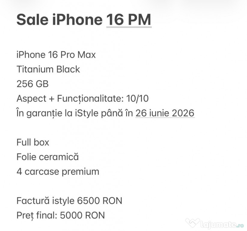 Anuntul IPhone 16 Pro Max Titanium Black este adaugat de pe LaJumate.ro.