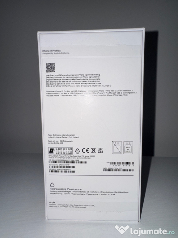 Vând iPhone 17 Pro Max Blue 1TB 1:1 replica, neutilizat, doar cutia desigilată.Anuntul IPhone 17 Pro Max Blue 1TB 1:1 este adaugat de pe LaJumate.ro.