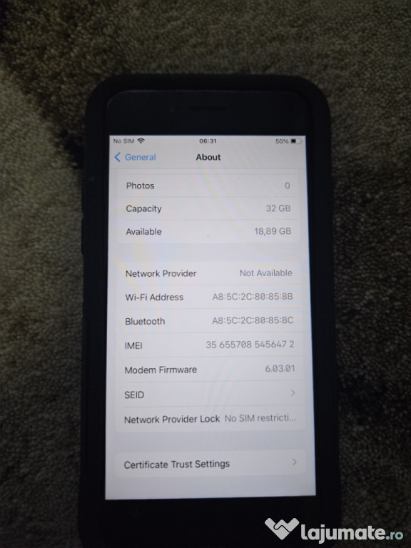 Vand Iphone 7 negru, 32gb, 99% sanatate baterie, liber de retea, fara cont blocat, nefolosit, impecabil, fara zgarieturi sau fisuri, cu o husa cadou, fara cutie sau accesorii. Nu ma intereseaza schimburi, doar cash. Multumesc!Anuntul Iphone 7, 32gb, negru, 99% baterie, impecabil este adaugat de pe LaJumate.ro.