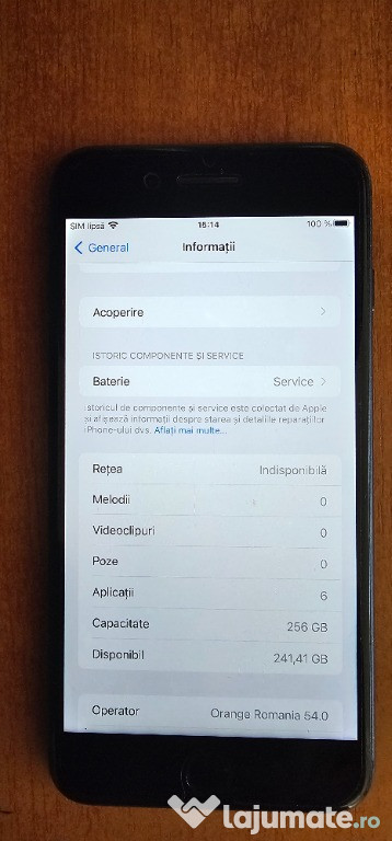 Vând iPhone 8 Plus 256GB, culoare Space Grey.Folosit, dar în stare foarte bună! Este perfect pentru oricine își dorește un dispozitiv performant, elegant și cu un spațiu de stocare generos - 256GB.
