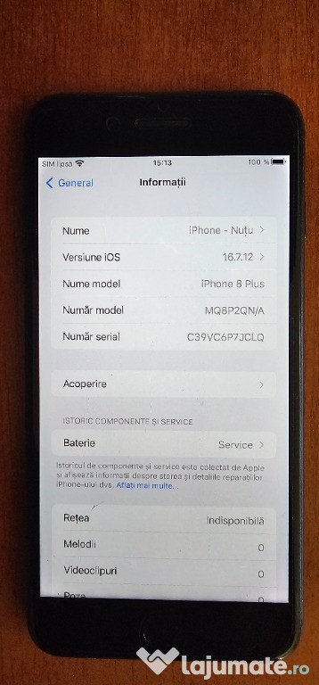 Anuntul IPhone 8 Plus 256GB, culoare Space Grey este adaugat de pe LaJumate.ro.