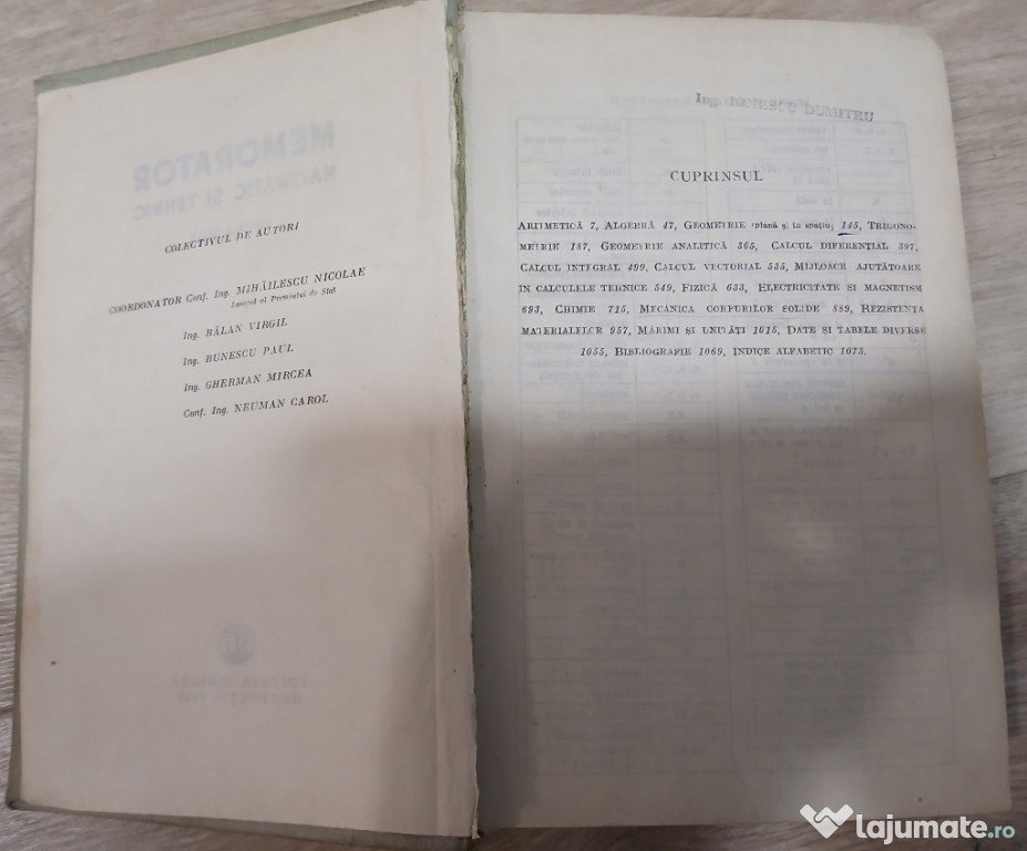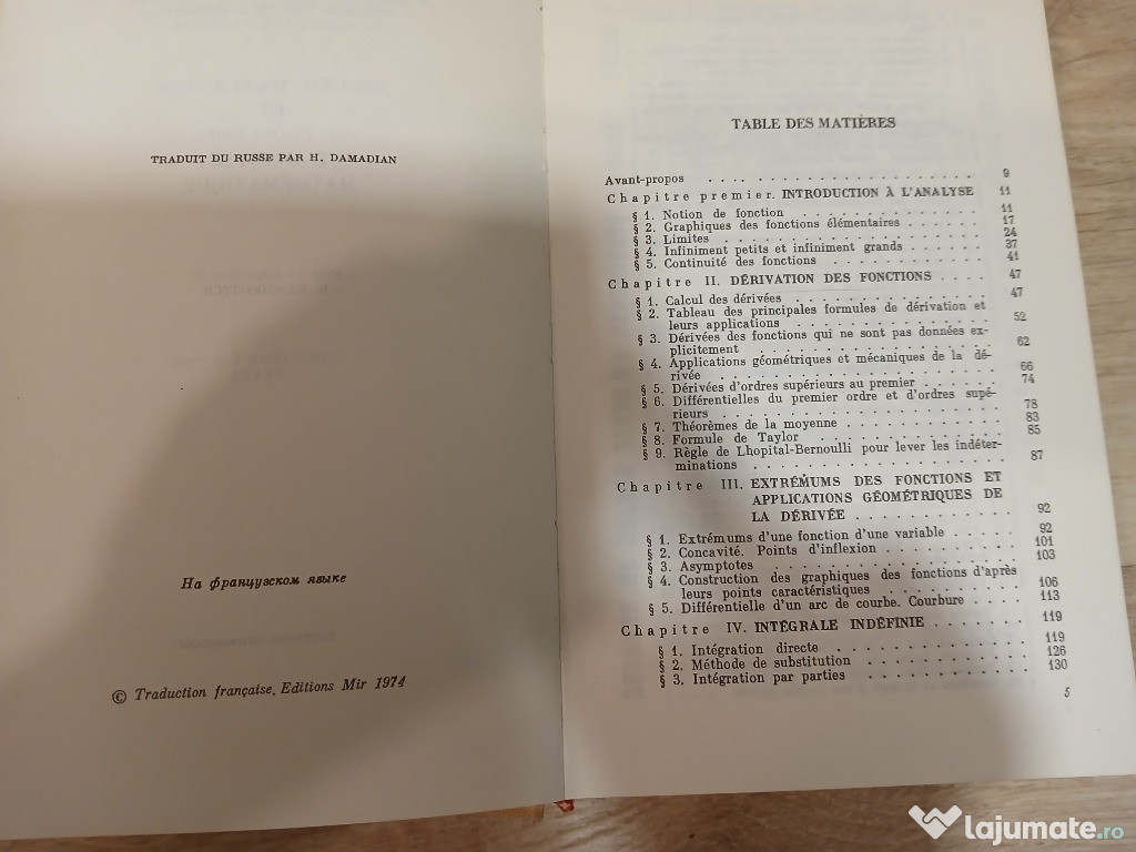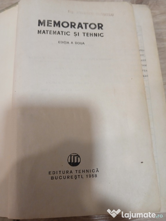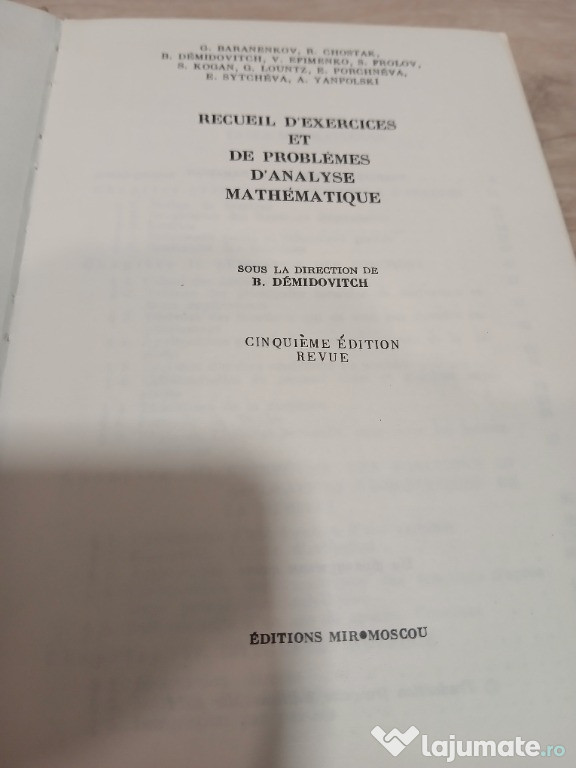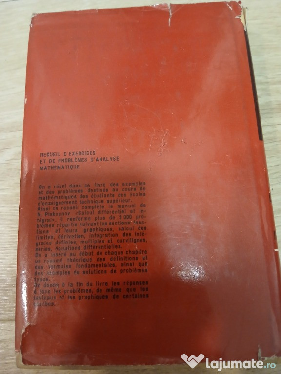 1. Recueil d'exercices et de problemes d'analyse mathematique (Editions de Moscou - 1974) - pret 20 de lei2. Memorator matematic si tehnic (Editura tehnica - 1958) - pret 70 de lei