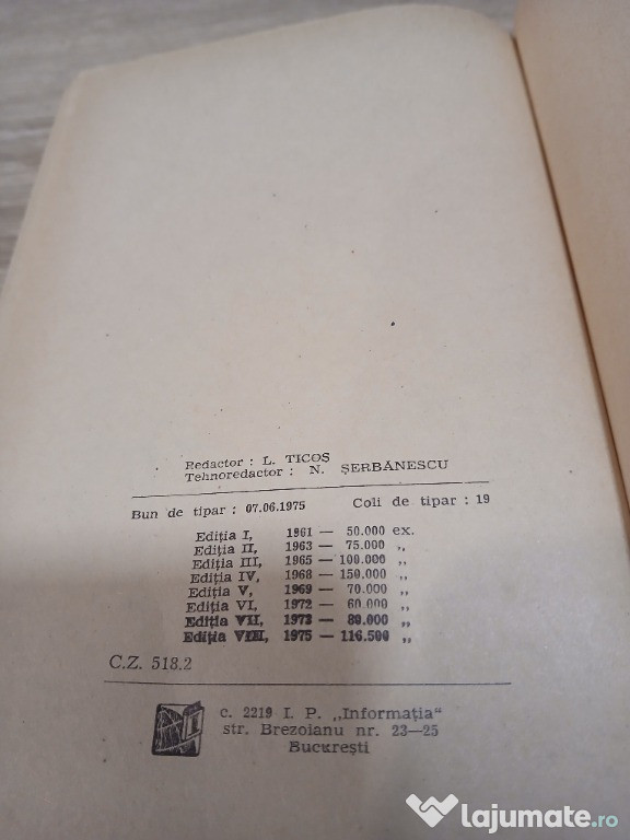 3. Tabele matematice uzuale (Editia 8 - 1975) pret 40 de lei.