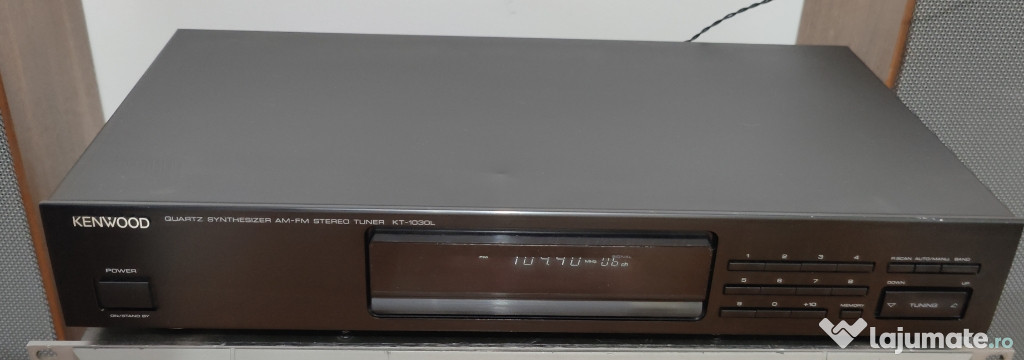 2. Tuner Kenwood KT1030L, fata de aluminiu, arata bine, sensibilitate la semnal buna, sunet bun, cu o mica adancitura sus, pe capac.