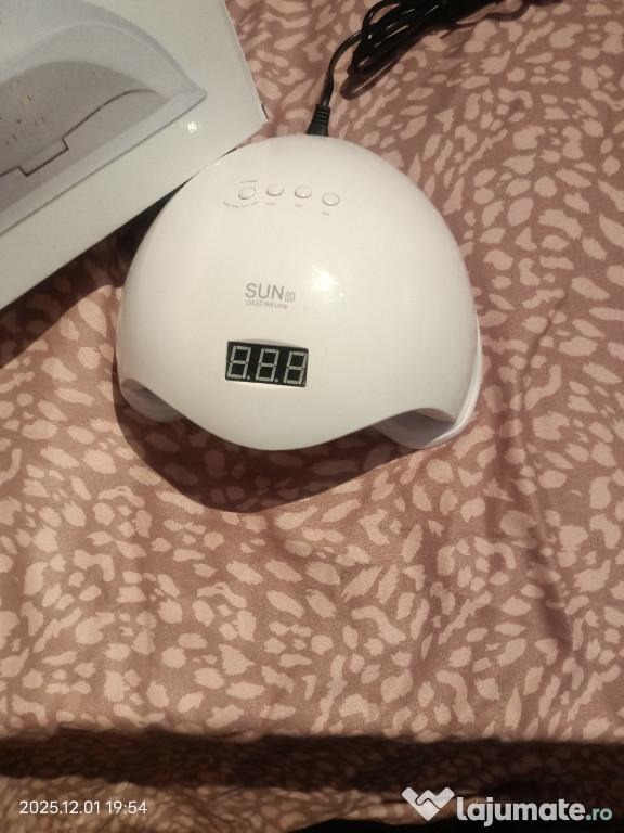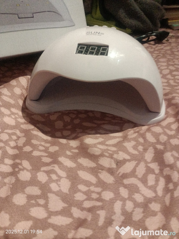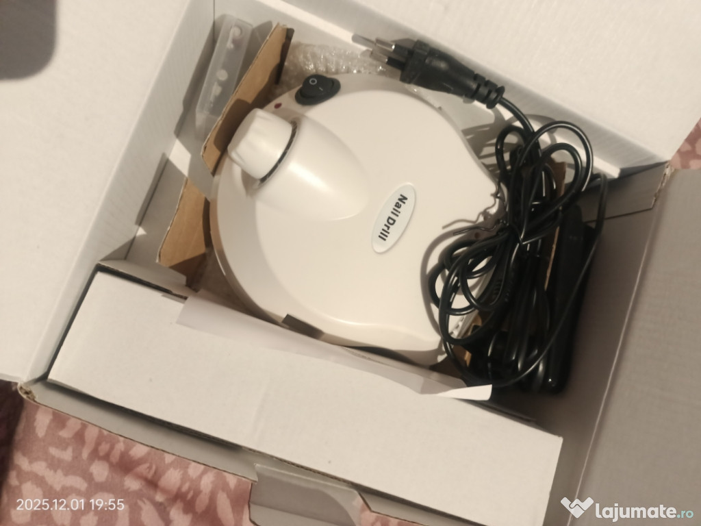 Ofer spre vânzare un kit complet pentru manichiură/pedichiură, format din pilă electrică, lampă UV, a ...