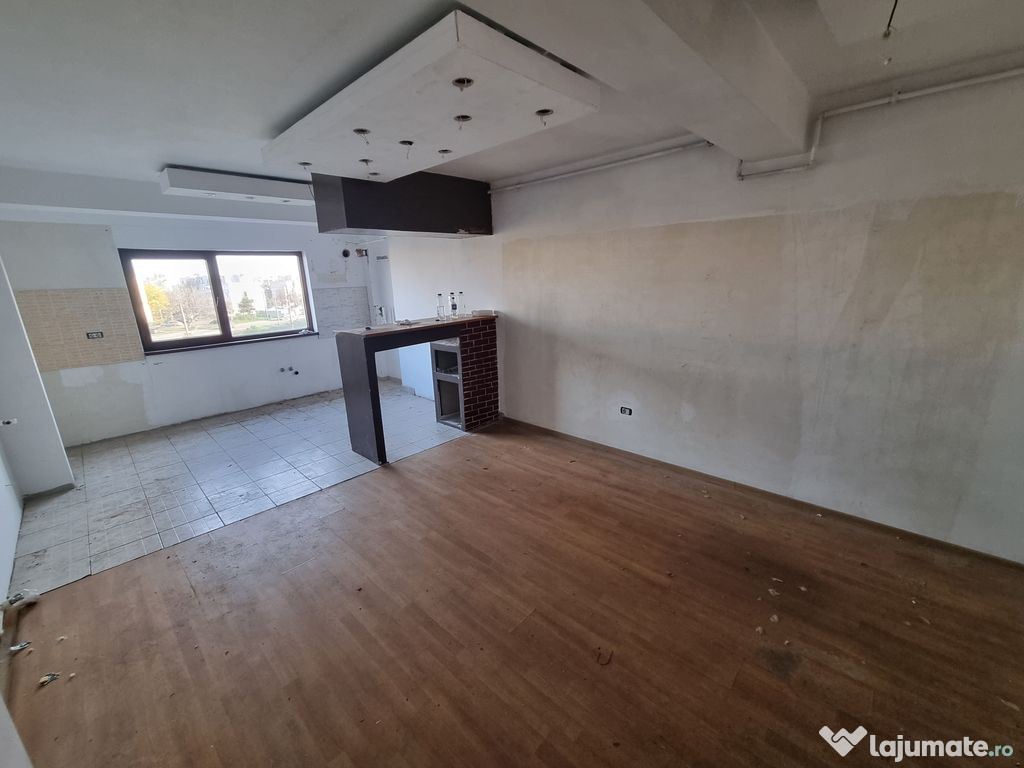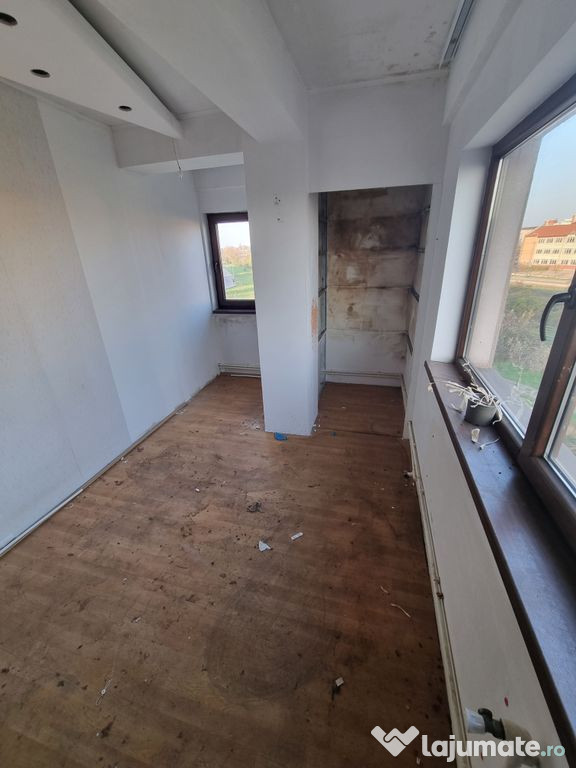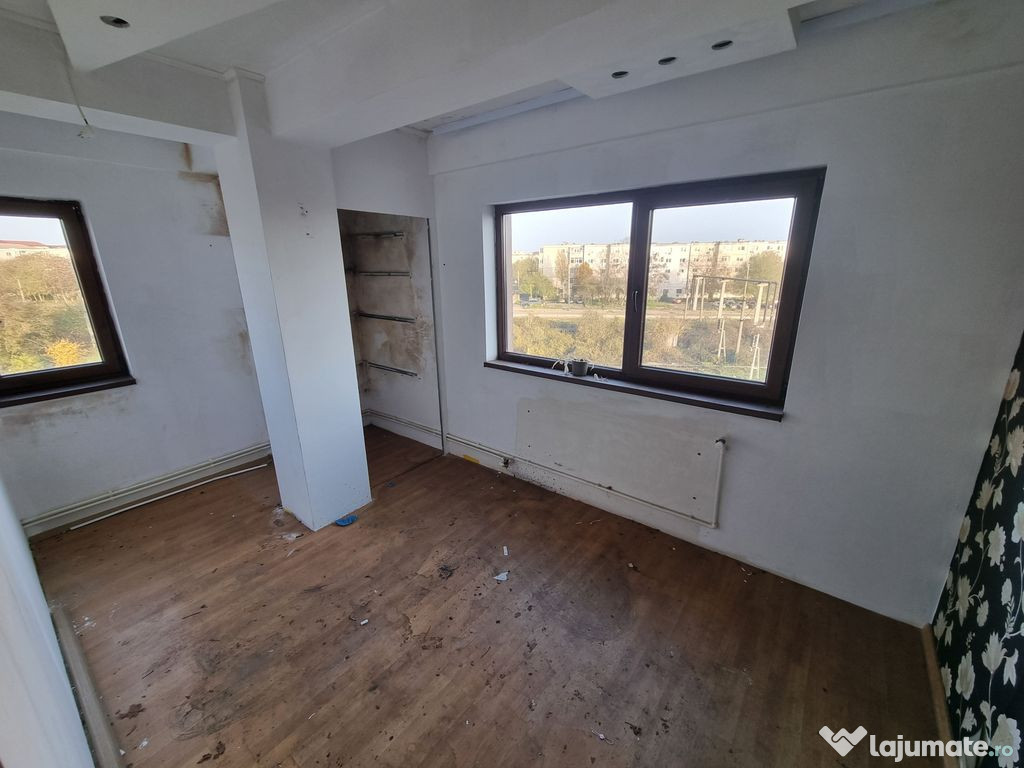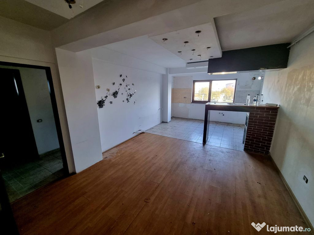 --Acord imobiliar va propune spre achizitie un apartament de 2 camere decomandat ,momentan este transformat in 3,se poare reveni la compartimentarea initiala,liber,interiorul necesita renovare totala,gazul tras in apartament,bucatarie open space,izolat exterior.--blocul dispune de o curte inchisa unde se poate achizitiona un loc de pArcare la pret separat(6000 eur +tva),foisor si loc de joaca pt copii.