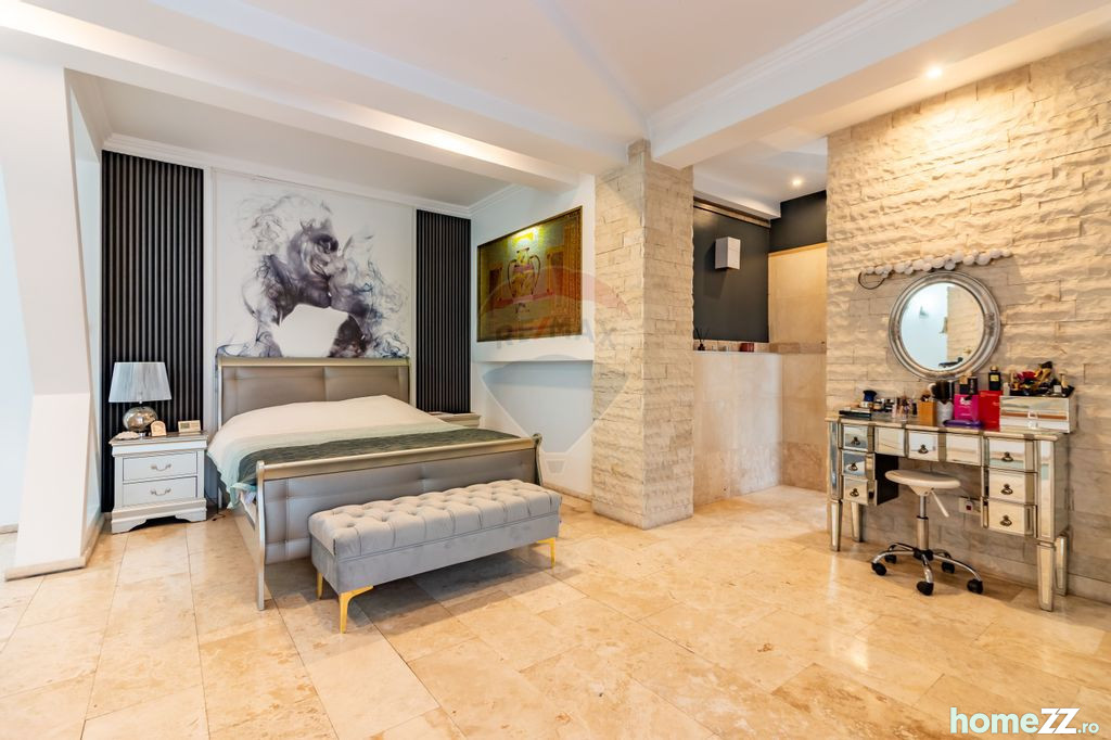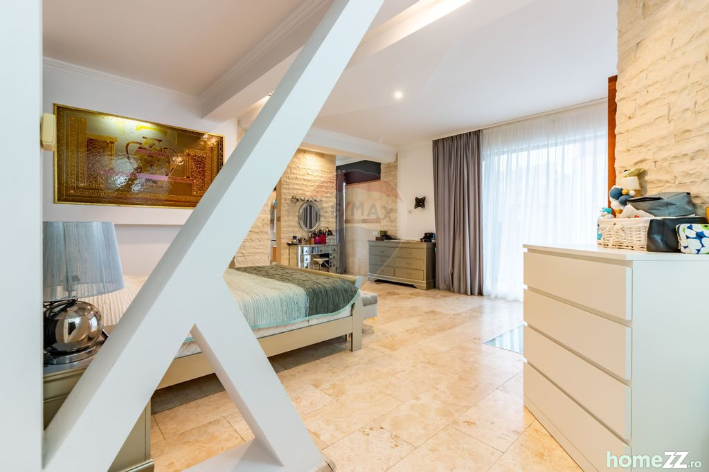 La etaj gasim doua dormitoare frumos compartimentate, fiecare cu zona de dressing si baie proprie. Deasemenea, fiecare dormitor are iesire catre propria terasa deschisa.