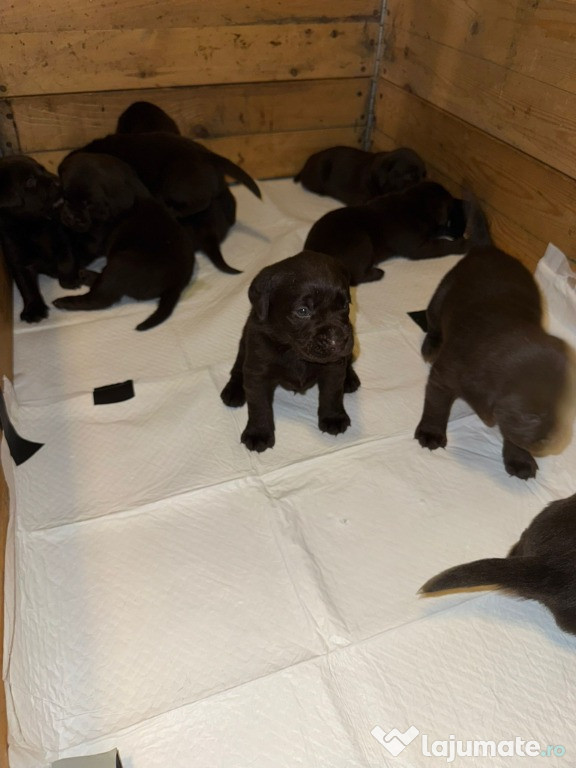 Pui de Labrador ciocolatiu, sănătoși și jucăuși, în vârstă de 4 săptămâni. Vor putea părăsi cuibul începând cu 15 decembrie. Sunt deparazitați, vaccinați conform vârstei și au carnet de sănătate. Crescuți într-un mediu curat, foarte prietenoși și potriviți pentru familii.
