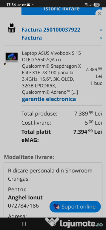 Livrare: predare personală în București sau livrare cu verificare.