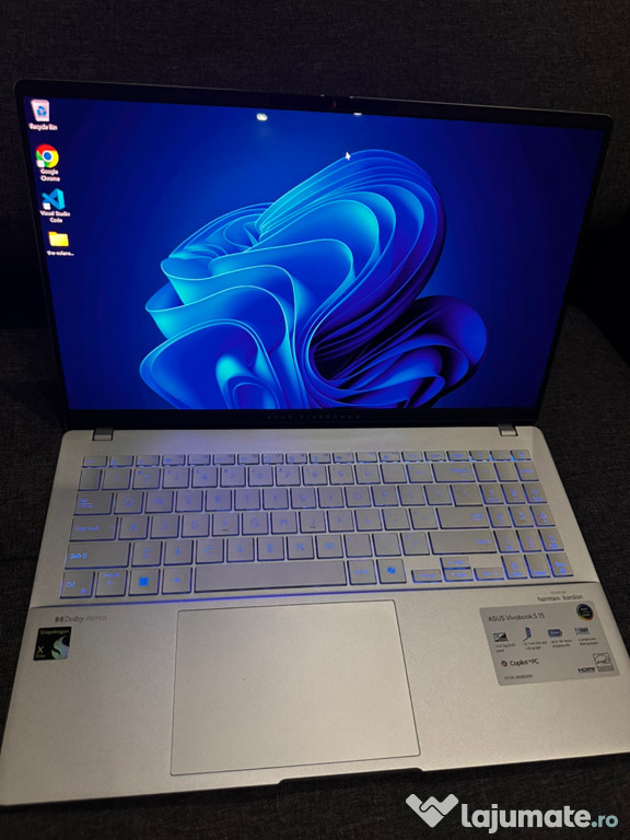 Laptop ASUS Vivobook S 15 OLED 15.6 3K Snapdragon X Elite 32GB 1TB ca nouVând laptop ASUS Vivobook S 15 OLED cumpărat vara trecută pentru facultate. A fost folosit foarte puțin, în principal pentru activități ușoare precum programare, browsing și documente. Laptopul este în stare perfectă, funcționează impecabil și arată ca nou.