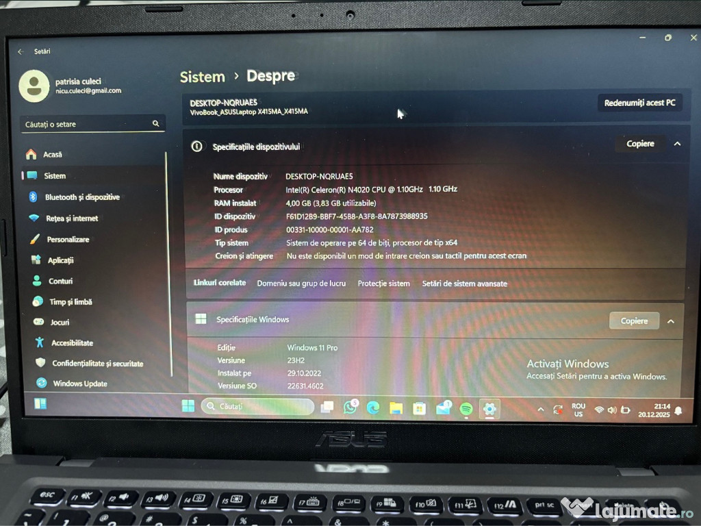 Anuntul Laptop Asus VivoBook X415MA este adaugat de pe LaJumate.ro.