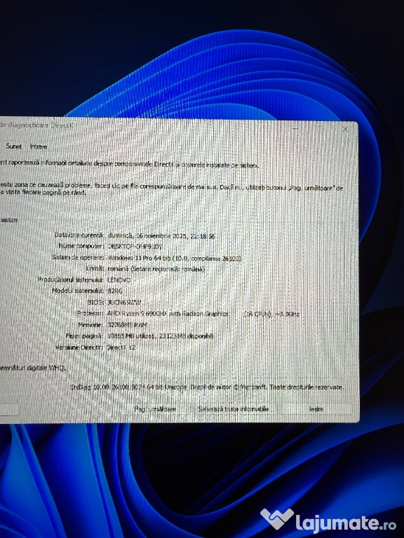 Vând laptop pentru gaming Lenovo legion 5 pro. Procesor AMd ryzen 9600H X, 32GB memorie RAM, Placa vi ...