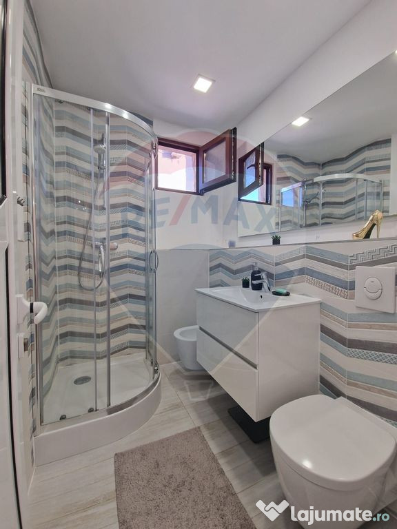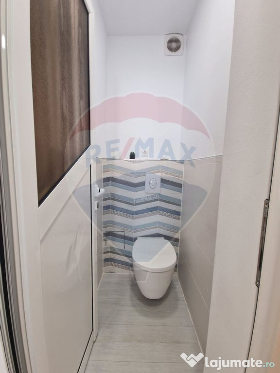 Apartamentul beneficiază de două băi: baia de serviciu este echipată cu sistem de aerisire eficient, asigurând un mediu proaspăt și fără umezeală, iar baia principală, spațioasă și luminoasă, dispune de geam pentru ventilație naturală și bideu, oferind astfel un plus de confort și funcționalitate.