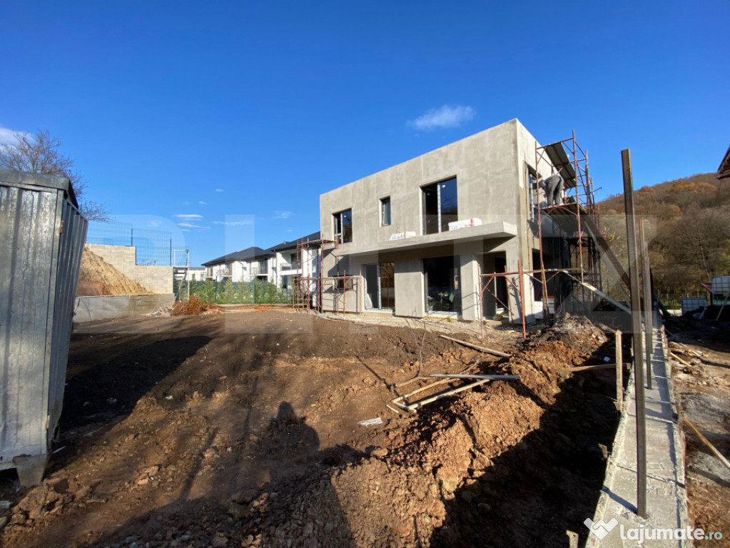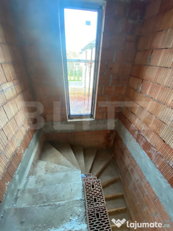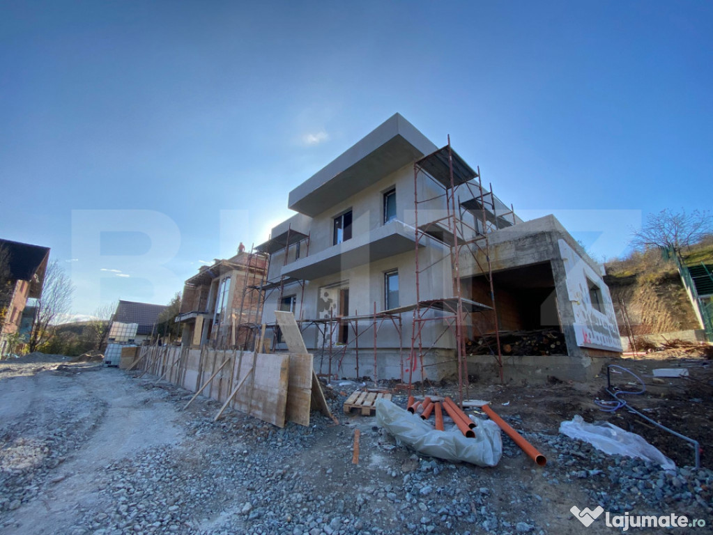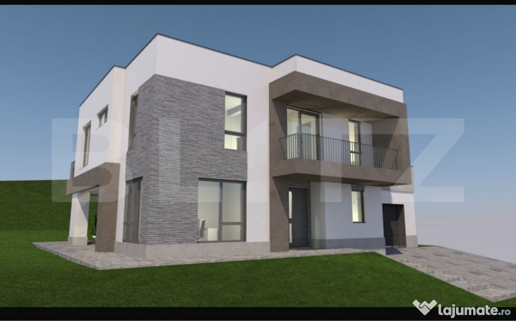 Blitz vă propune spre vânzare o casă modernă, tip P+E, amplasată într-o zonă liniștită, în mijlocul naturii, dar totodată foarte aproape de oraș.Casa are o suprafață utilă de 140 mp, la care se adaugă un garaj de 22 mp integrat în construcție, amplasată pe un teren de 600 mp ce permite amenajarea unei grădini, terase sau a unui spațiu de relaxare.