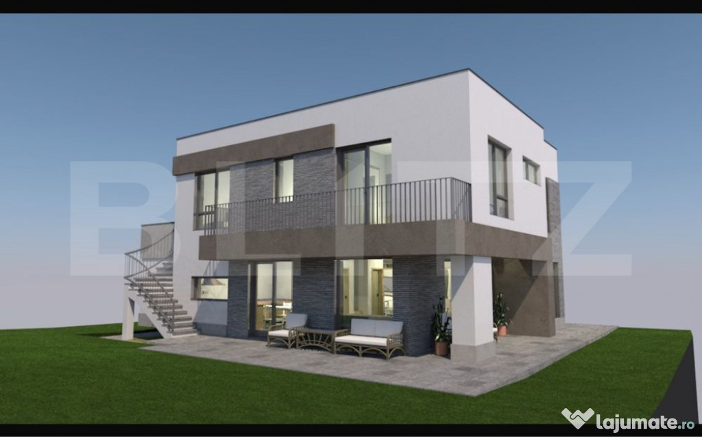BONUS: Deasupra garajului se va amenaja o terasă spațioasă, cu acces printr-o scară exterioară, perfectă pentru petrecerea timpului în aer liber și admirarea priveliștii.