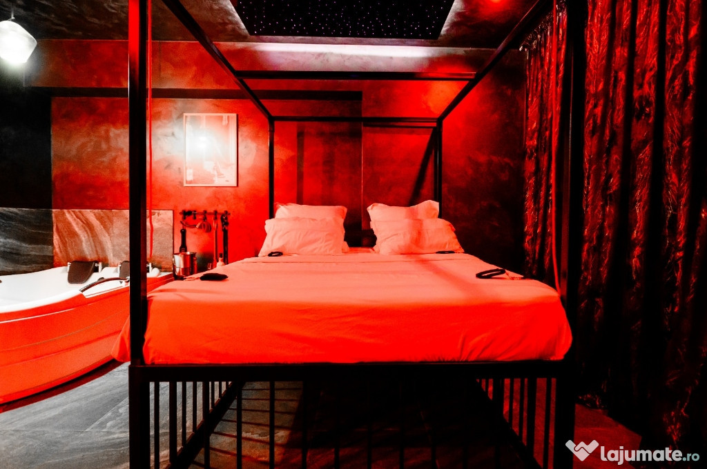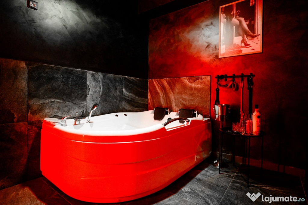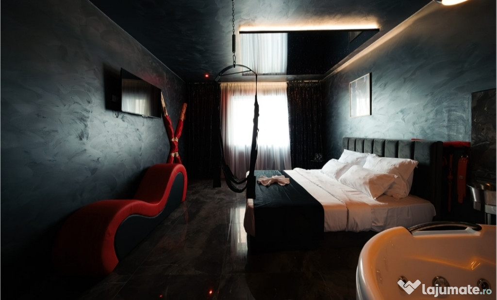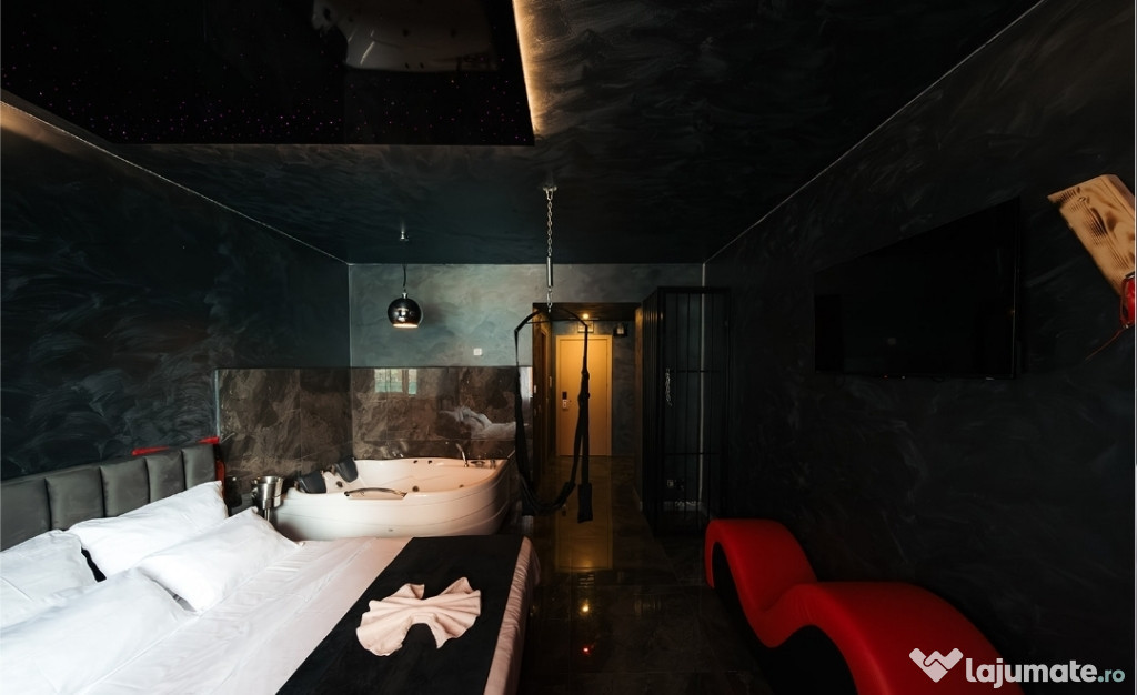 Descoperă un Love Room modern și complet amenajat, creat special pentru cupluri care vor să trăiască momente intense, romantice și discrete. Spațiul este decorat tematic cu lumină ambientală, elemente Red Room și detalii elegante care adaugă rafinament și senzualitate.Ce oferim: