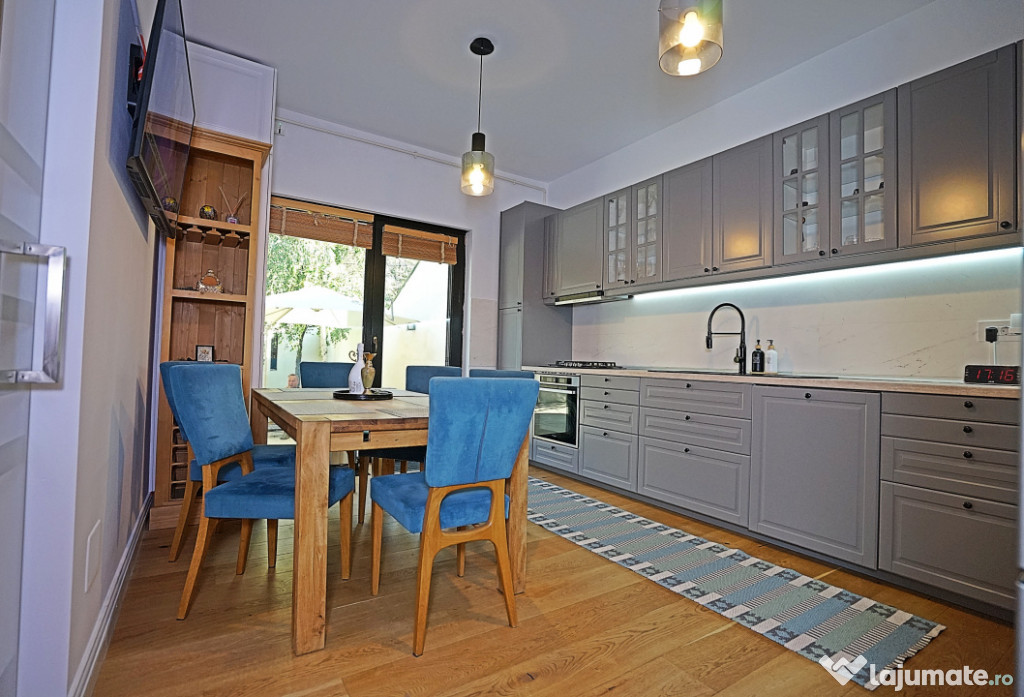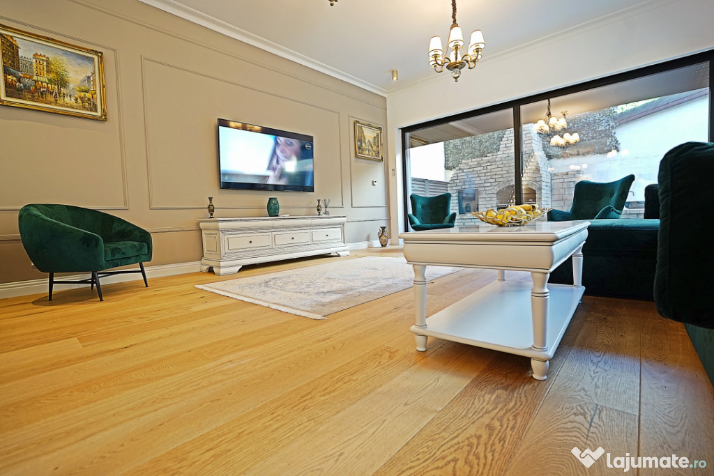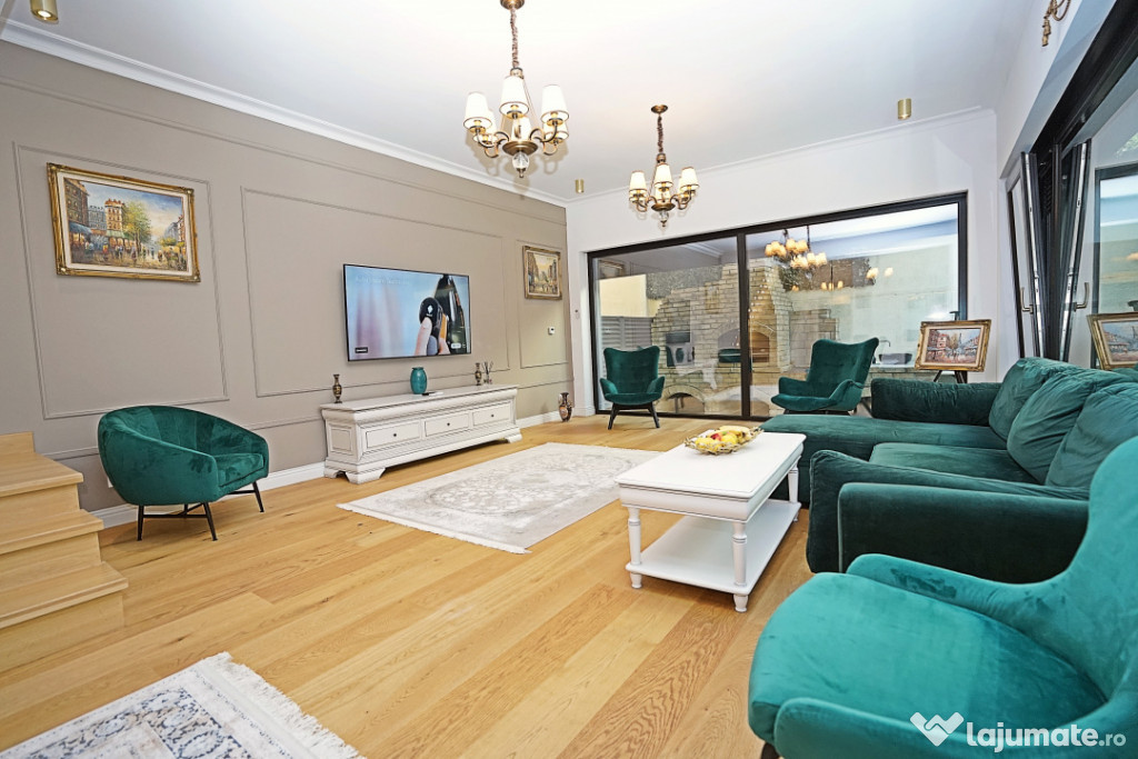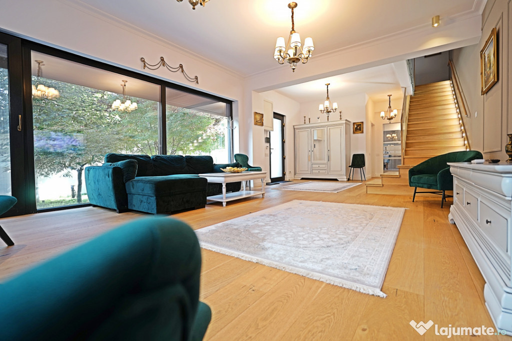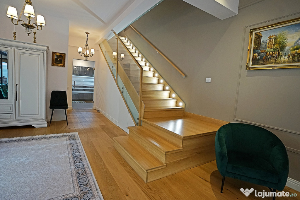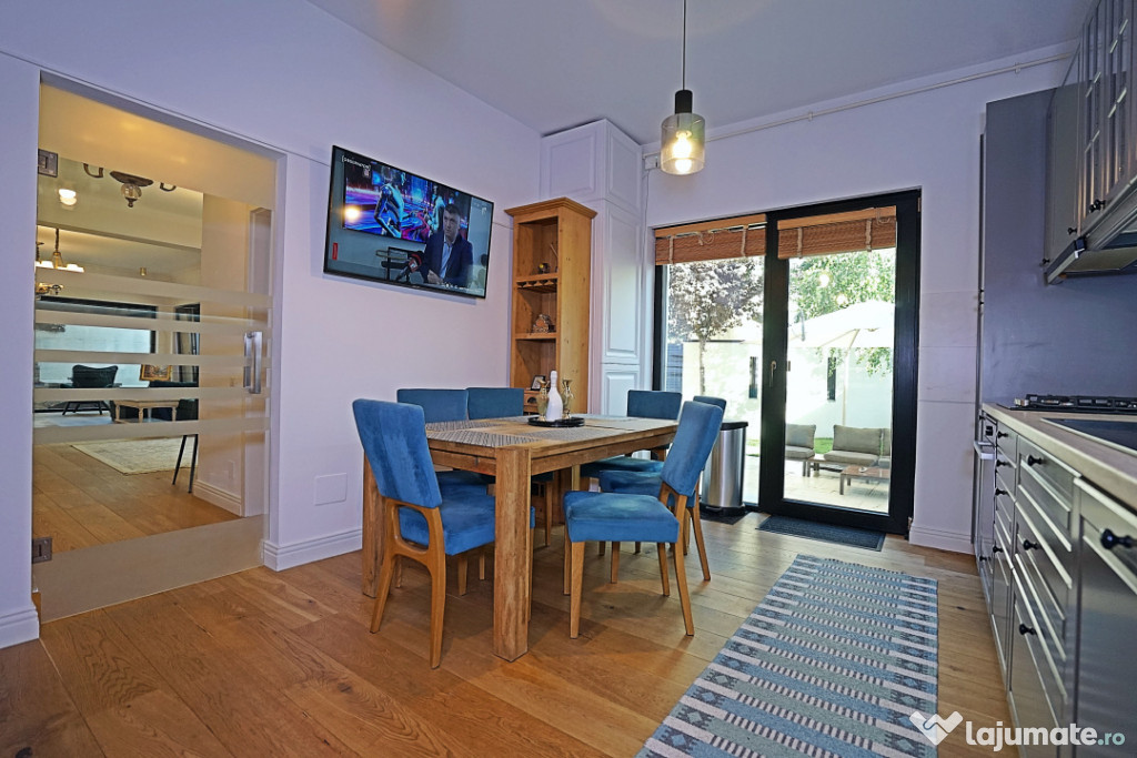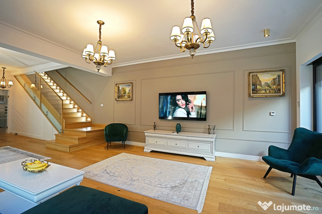 Benediciaza de suprafete vitrate mari ce ofera foarte multa lumina naturala, finisajele sunt premium, de cea mai buna calitate, mobilierul si amenajarile au fost executate sub indrumarea unui designer, cu foarte mult bun gust si ofera un spatiul ideal pentru a petrece momente frumoase si relaxante.