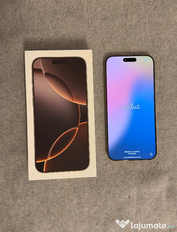 Vând iPhone 16 Pro Max, 256GB, culoare Desert Titanium, în stare excelentă + Husă silicon originală Apple, achiziționată de la IStyle. Preț fix 4800 lei. Telefonul a fost folosit cu folie și husă din prima zi. Este liber de rețea și nu are zgârieturi, lovituri sau probleme tehnice. Stare sănătate baterie 92%. Dețin bonul fiscal de la achiziția telefonului și husei, precum și cablu de alimentare. Motivul vânzării: upgrade la alt model. Nu accept schimburi și nu trimit prin curier, predare personală doar în București.Anuntul Vând iPhone 16 Pro Max, 256GB, Desert Titanium + Husa Apple este adaugat de pe LaJumate.ro.