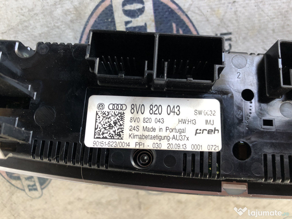 Panou comanda clima Audi A3 8V 2016. Cod(uri): 8V0820043. Piesele comercializate sunt originale, provenite din dezmembrari. Dispunem de o gama larga de piese multimarca. Piesele sunt verificate inainte de a fi puse spre vanzare. In caz de neconformitate piesa se poate returna. Va rugam sa verificati disponibilitatea pieselor telefonic. Trimitem in tara prin curier.Marcă: Audi