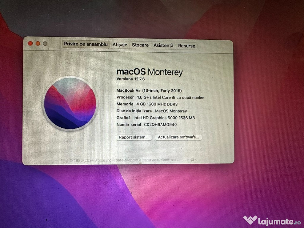 Anuntul MacBook Air A1466 2015 i5 4GB este adaugat de pe LaJumate.ro.