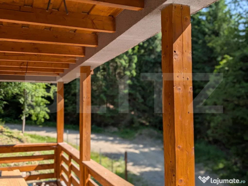 Cadru natural spectaculos, cu brazi falnici și un pârâu montan aflat în apropiere – sursă de relaxare, dar și potențială resursă pentru independență energetică