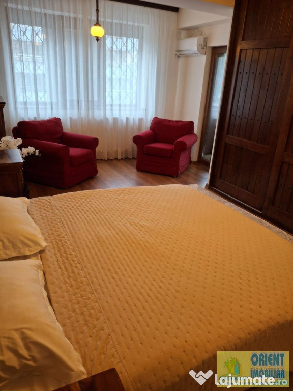 (cod7505) | Agentia ORIENT IMOBILIAR va propune spre inchiriere in Constanta, in MAMAIA, vis a vis de Dorna, DUPLEX P+1, desfasurat astfel: PARTER compus din living foarte generos, baie si bucatarie inchisa, ETAJUL compus din 2 dormitoare, baie, hol si balcon. Duplexul este mobilat si utilat cu mobila de calitate, are o suprafata de 130mp, dispune de loc de parcare privat si se inchiriaza pe termen lung, inclusiv lunile de vara.Chirie 1.000 Euro/luna; anticipat 1 luna + 1 luna garantie + comisionul agentiei (jumatate din chiria primei luni).