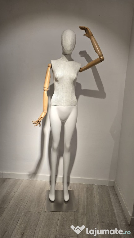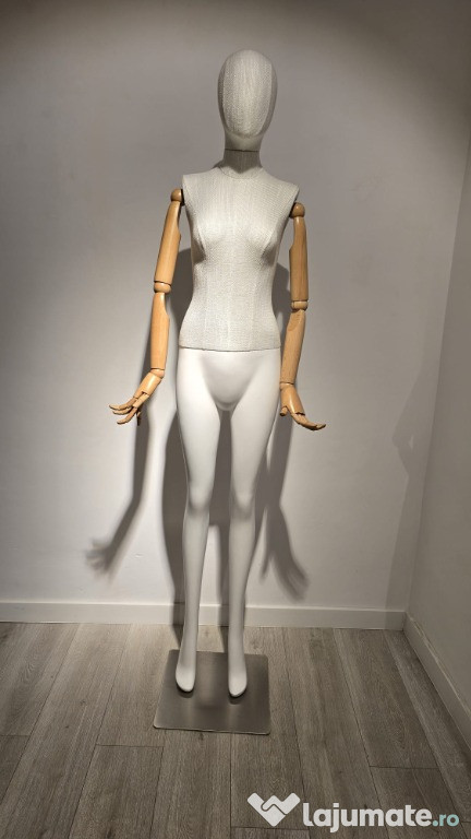 Manechine dama din fibra de sticla cu maini din lemn si tesatura in