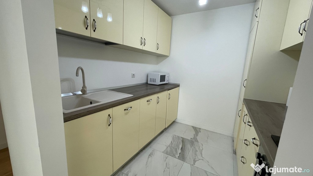 Compartimentare: living luminos cu bucătărie open-space complet utilată, dormitor spațios, baie modernă și terasă cu vedere frumoasă.