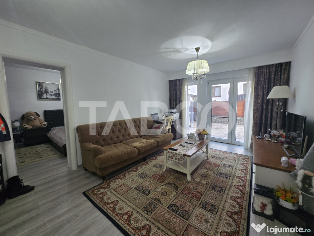 COMISION 0% - Apartament 3 camere de vanzare, decomandat, 63 mp, curte 93mp, str. Ioan Virgil Ispas, SibiuLocuinta visurilor tale te asteapta! La parterul unei vile elegante, intr-o zona linistita si cocheta, descoperi un apartament nou, complet mobilat modern, pregatit sa devina ''acasa'' din prima clipa. Adevarata bijuterie a acestei proprietati este curtea generoasa de 93mp. Un spatiu rar intalnit, unde poti savura cafeaua de dimineata si serile linistite sub cerul liber. E locul in care copiii pot alerga in siguranta sau unde poti amenaja un colt verde cu flori. Interiorul este luminos, amenajat cu bun gust, cu finisaje moderne si mobilier de calitate, astfel incat tot ce iti ramane de facut este sa iti aduci valiza si sa te bucuri de confort. Este un apartament care ofera intimitatea unei case, dar cu toate avantajele unei locuinte moderne si sigure. ATENTIE! Daca vei veni sa-l vezi, s-ar putea sa nu mai vrei sa pleci.