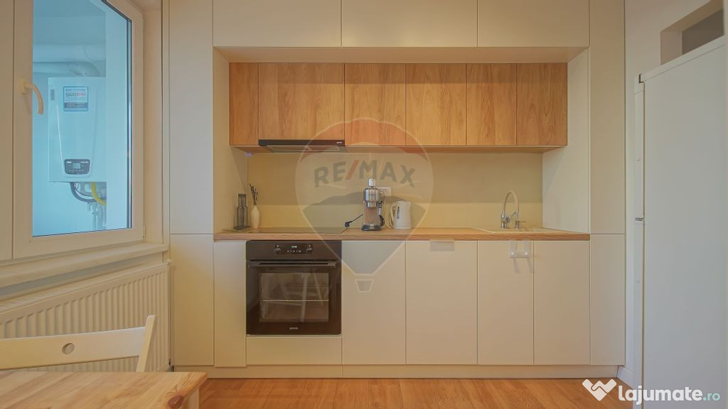 Bucatarie separata complet mobilata si utilata (frigider,aragaz,hota,cuptor,aparat de cafea)
