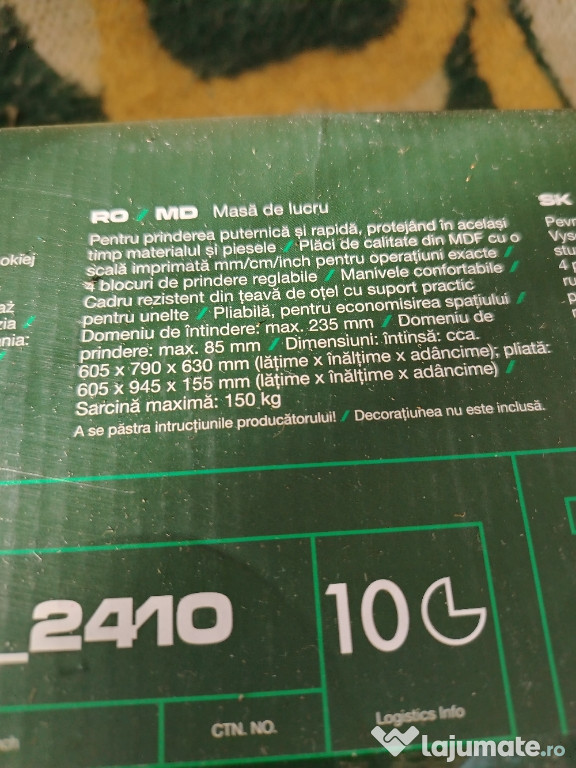Vând masa de lucru Parkside noua la cutie după cum se vede în poze relații la telefon 0774043426 ...