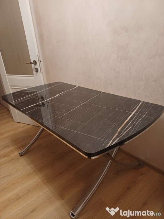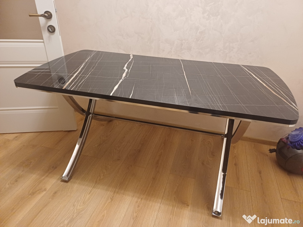 Vand masa de lux Arma, cu blat negru marmorat MDF lucios si picioare argintii, noua. Am cumparat-o pe ...