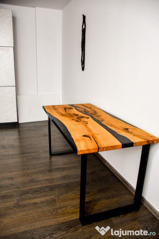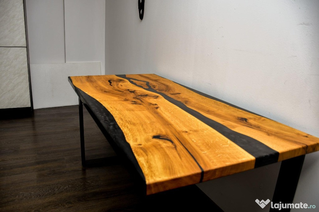 Masa este realizată manual,cu o combinatie elegantă de lemn natural si rășină epoxidică bronz,ideală ...