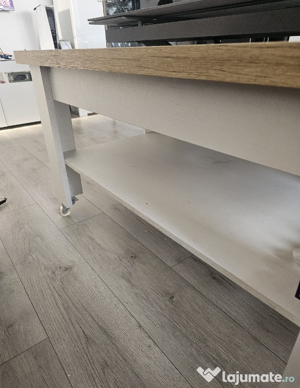 Vând măsuță de cafea în stare foarte bună. Materiale: PFL, melamină.Dimensiuni: Lățime: 60 cm, Lungime: 110 cm, Înălțime: 53 cm.