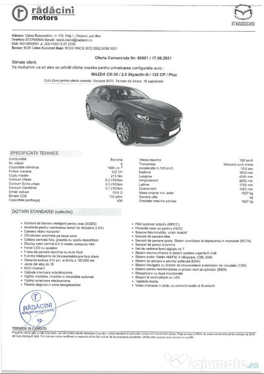 Anuntul MAZDA CX-30 G122 MT6 PLUS garantie sept 2km este adaugat de pe LaJumate.ro.