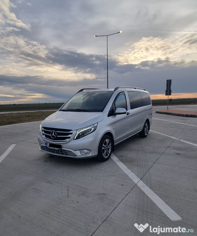 Se vinde Import recent Mercedes Vito Long din 2019 luna 11 cu motorizare noua 2.0 diesel, 163 cai, cutie automata in 9 rapoarte (9G- Tronic), 8 locuri. Masina are optionale ce sunt foarte rare pe un Vito precum: Faruri ILS ce decupeaza masina din fata, Stopuri led, Senzori de parcare fabrica fata-spate, Oglinzi electrice, incalzite si retractabile electric, Geamuri elctrice fata-spate, AC fata-spate, Scaune incalzite, Padele volan, Comenzi volan, Interior ca nou, complet piele cu scaune confort reglabile, Senzori ploaie, Jante aliaj echipate cu anvelope de iarna dot 2024 luna 1, Camera pentru marsalier, Start-Stop. Norma de poluare euro 6.Intr-un cuvant masina se prezinta IMPECABIL, Ca Noua, cu extrase service de la Mercedes Germania. Va asteptam la vizionare!